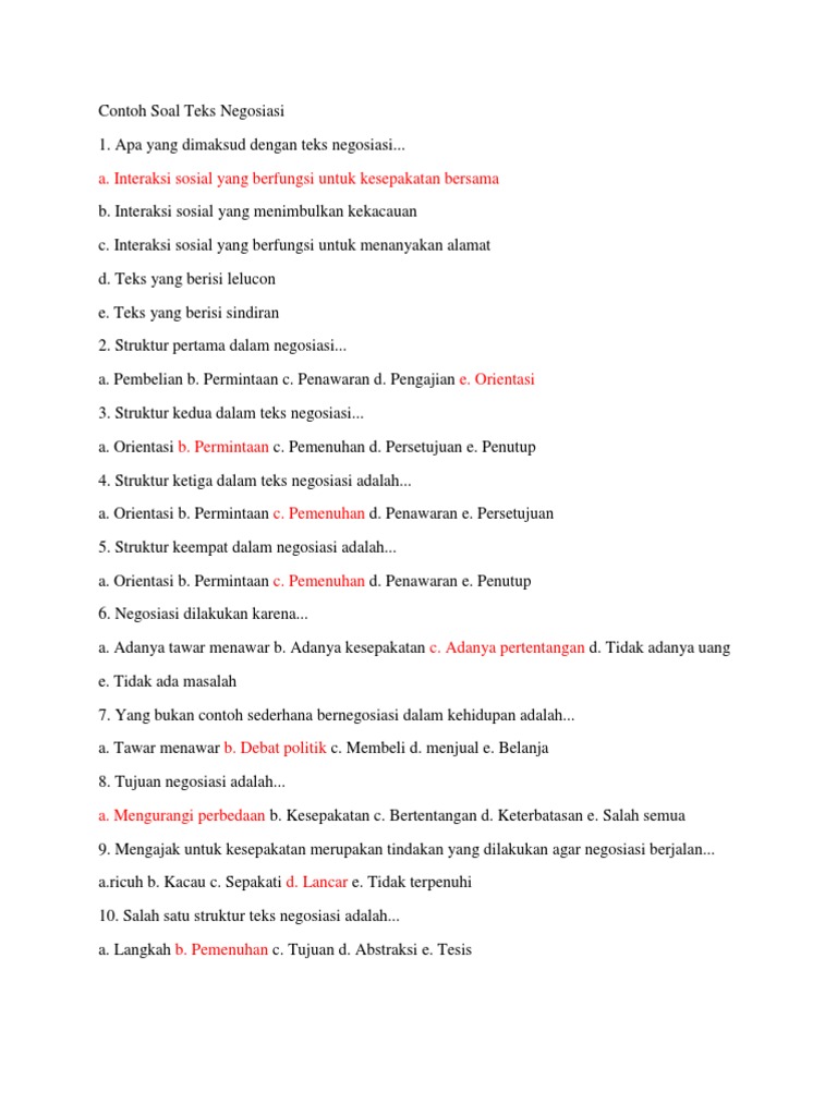 .jawa barat 40122 soal tentang teks laporan hasil observasi 1. Teks negosiasi juga merupakan teks berisi dialog atau tuturan dua orang atau lebih yang terlibat dalam perdebatan untuk mencapai kesepakatan bersama yang menguntungkan kedua belah pihak. 1.sebutkan beberapa hal yang perlu diperhatikan dalam bernegosiasi ! 20 soal yang bertemakan tentang bab teks negosiasi.deskripsi lengkap. Dalam suatu teks eksposisi bagian pembuka yagn memuat tentang pandangan awal penulis.